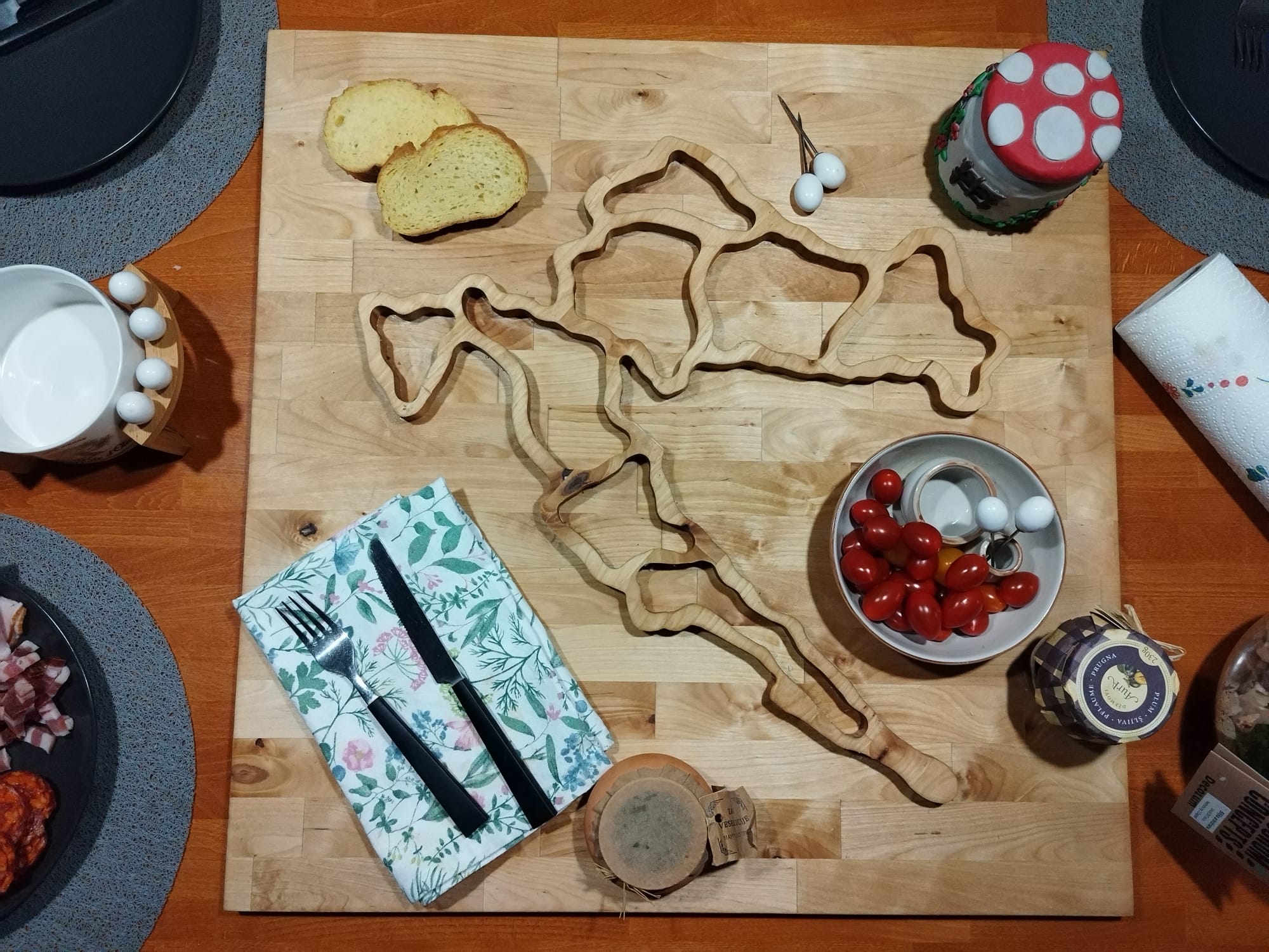 Ovdje možete vidjeti daske raznih oblika koje imaju napravljene utore za hranu. Debljine ovih dasaka se kreću od 2 do 3 cm, no mogu se izraditi i daske još većih debljina. Jedino za što se morate pobrinuti je čime ispuniti utore na ovim predivnim daskama, a nama prepustite sve ostalo.